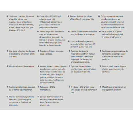 Coupe légume de la marque DITO SAMA pour une productivité accrue, performances exceptionnelles, qualité supérieure et conception robuste.