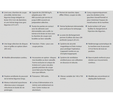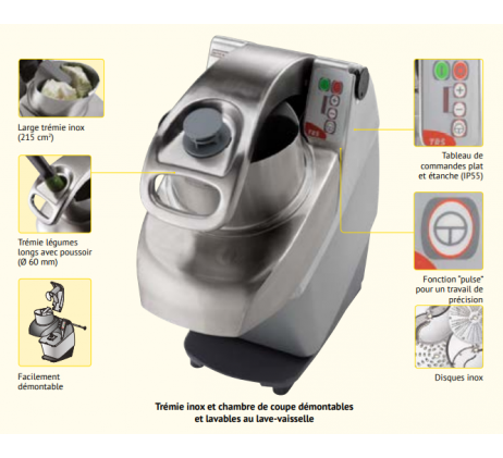 Type de machine Puissance de raccordement | Coupe légumes 0.5 Kw |