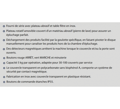 Capacité 5 kg par opération, adaptée pour 30-100 couverts par service.