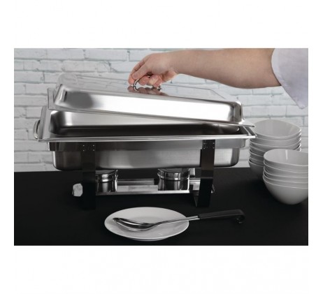 L'ensemble comprend 4 bacs GN 1/1 de 9L, idéal pour servir de grandes quantités. Chaque ensemble comprend un bac GN 1/1 profondeur 65mm en acier inoxydable 18/0 finition miroir poli d'une capacité de 9 litres, un bac à eau, un couvercle et deux supports combustible.