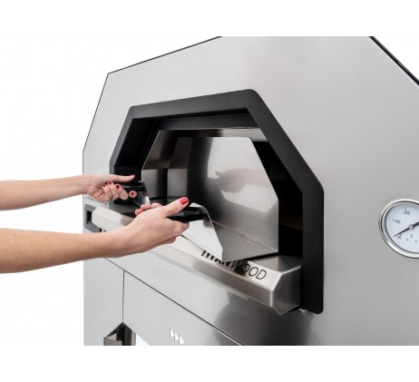 Pour cuire 4 pizzas de 35 cmParfait pour l’intérieur et l’extérieurSol de cuisson en pierre réfractaire de 2,5 cmIsolation en fibre de céramique de 4 cm d’épaisseurAvec un dessous de plan en béton cellulaire, de 8 cm d’épaisseurCheminée avec système anti-vent et anti-pluie de sérieDoté d’un thermomètreEn option : support avec roues