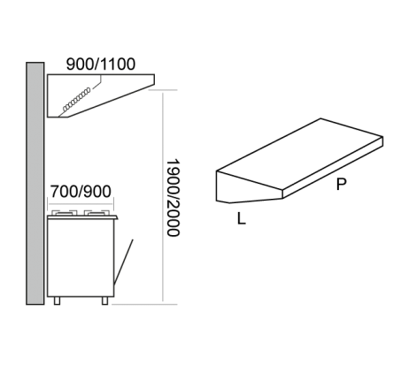 • Les hottes jusqu’à 4000mm sont fabriquées en une seule partie, de 4200 à 6000 elles sont fabriquées en 2 parties.