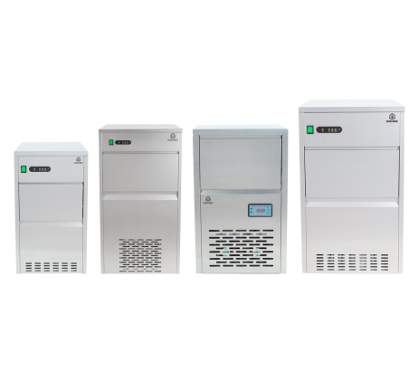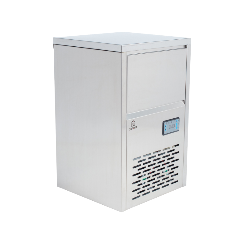 Structure extérieure en acier inoxydable, glaçons pleins, refroidissement à air, gaz R290, dispositif de nettoyage automatique, livré avec des pieds réglables.