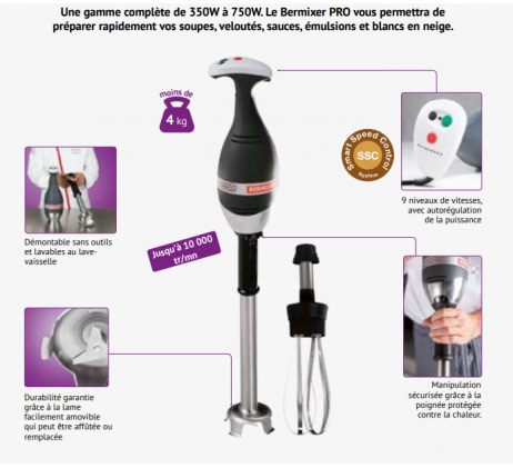 Le design Bermixer PRO garantit une manipulation sans effort gâce au faible poids de l'appareil et une hygiène maximale grâce au tube et à l'arbre complètement démontable sans outils.