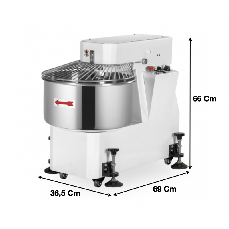 Pétrin à spirale avec tête fixe 1 vitesse 20 L