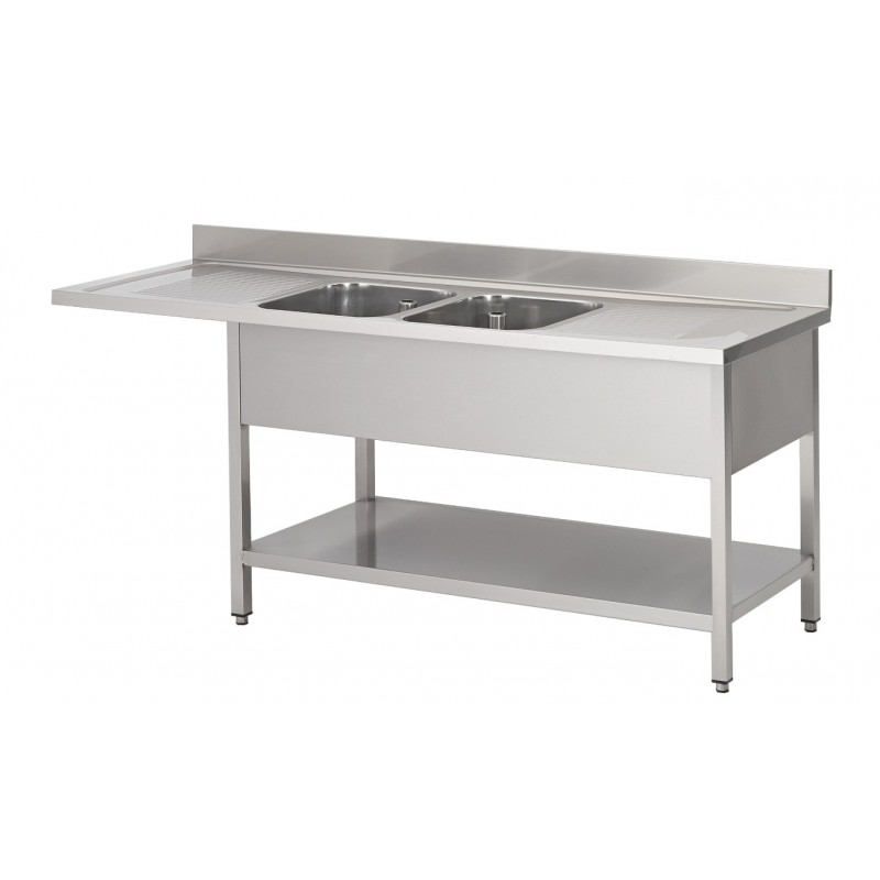Plonges standards en inox AISI 304 de 1 mm d’épaisseur avec un ou deux bacs et un ou deux égouttoirs selon le modèle. Piétement en tubes carrés de 40 mm avec bandeau avant et latéral en inox de 0,8 mm d’épaisseur de 300 mm de hauteur. Les plonges sont fournies avec bondes et crépines mais sans trou pour robinet.
