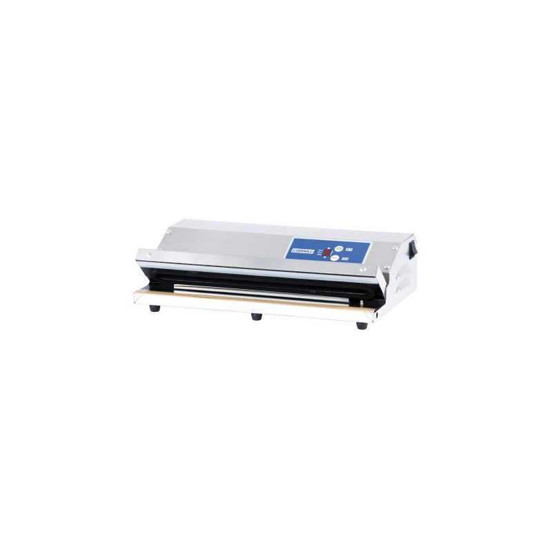 - Acier inoxydable - Aspiration extérieure - Commande digitale - Cycle de travail semi-automatique - Barre de soudure : 450 mm - Pompe à vide : 20 L/min - Puissance : 270 W / 230 V - Dimensions : L 470 x P 260 x H 130 mm - Poids : 10 Kg