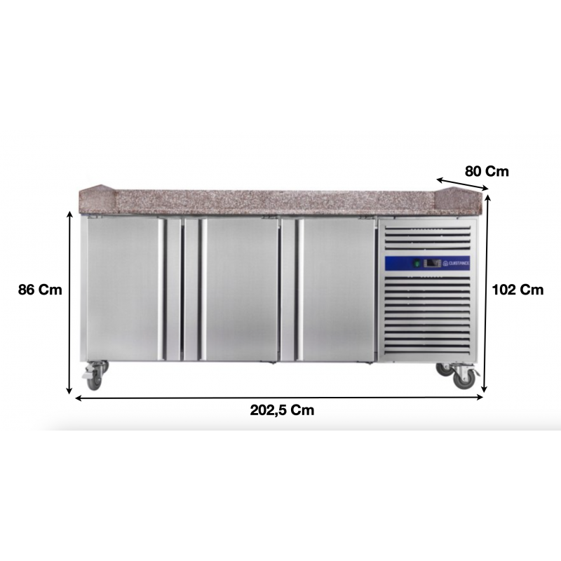 Table à pizza réfrigérée 3 portes avec plan en granit