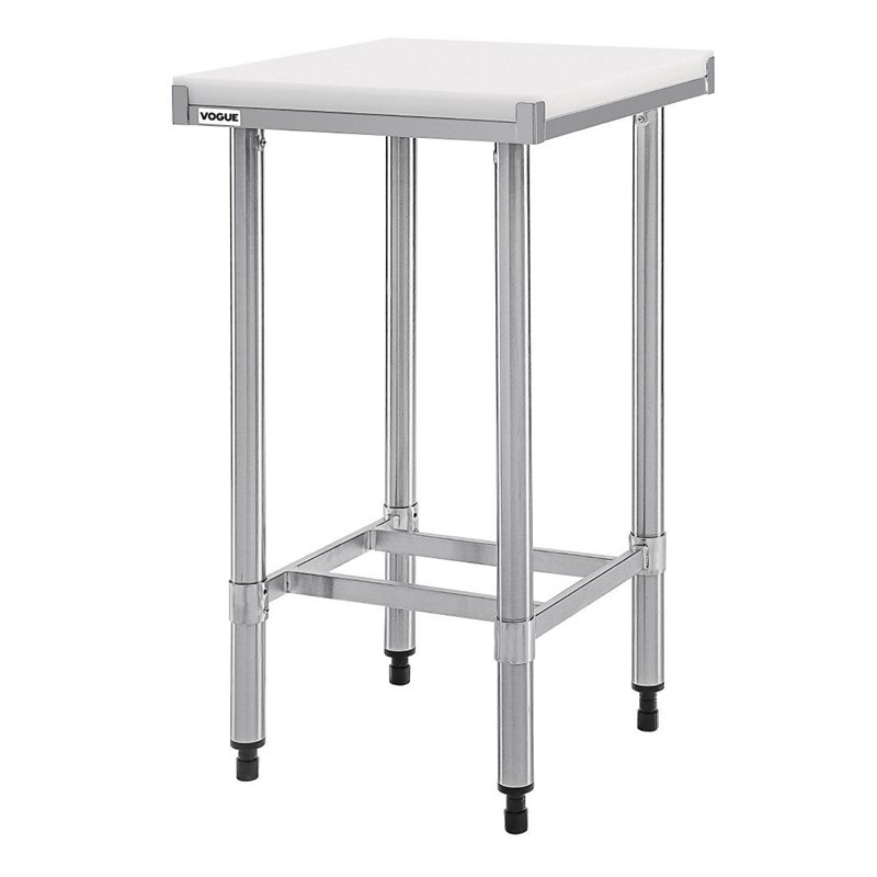 Table inox avec planche à découper haute densité intégrée et réversible de 35mm d'épaisseur. Structure en acier inoxydable.