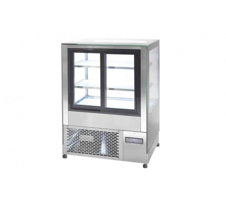 Structure intérieure et extérieure en acier inoxydable (dessous en galva) • Thermostat numérique Dixell / Carel • Froid ventilé •2 étagères en verre avec éclairage LED • Pieds réglables • Éclairage intérieur LED • Porte arrière coulissante en verre • Double vitre de sécurité à l’avant • Vitre de sécurité simple à l’arrière • Dégivrage automatique • Alimentation électrique 220V – 50 Hz • Gaz réfrigérant : R290 • Classe climatique : 3 (jusqu’à 25°C) • Température intérieure (ºC) : +2°C/ +8°C