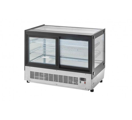 • Structure intérieure et extérieure en acier inoxydable (dessous en galva) • Thermostat numérique Dixell / Carel • Froid ventilé • Pieds réglables • Éclairage intérieur LED • Porte arrière coulissante en verre • Double vitre de sécurité à l’avant • Vitre de sécurité simple à l’arrière • Dégivrage automatique • Étagères inox • Alimentation électrique 220V – 50 Hz • Gaz réfrigérant R290 • Classe climatique 3 (jusqu’à 25°C) • Température intérieure : +2°C / +8°C